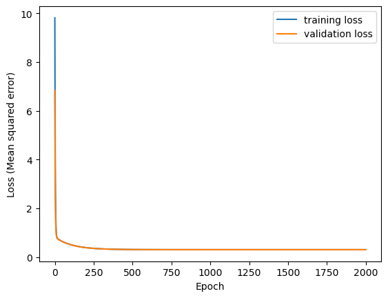 ax.set_ylabel('Loss (Mean squared error)')